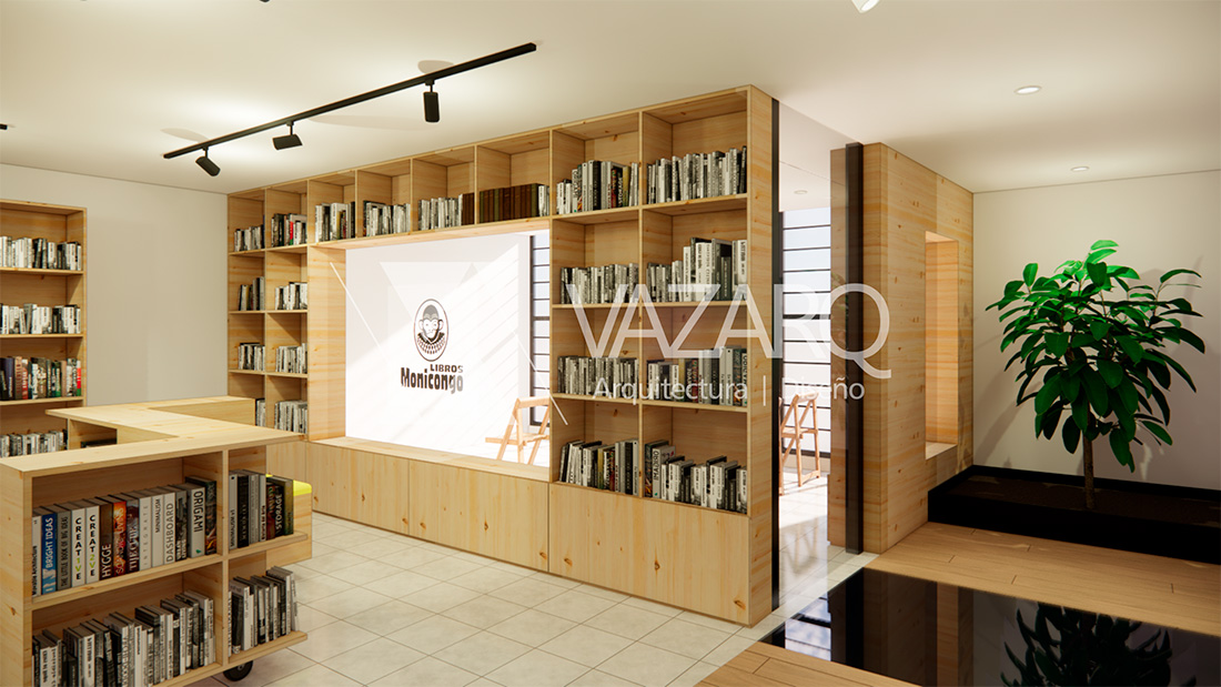 La Librería Monicongo surge como una propuesta cultural en su entorno, con el propósito de enriquecer a la comunidad local a través de la literatura y el arte, mientras desafía la homogeneidad de los bares que prevalecen en la zona. Este proyecto de remodelación fue concebido con la premisa fundamental de transformar el espacio arquitectónico en un cómplice activo, capaz de evocar una experiencia sensorial que fortalezca el vínculo sagrado entre el libro y el lector, una relación que, en su esencia, recuerda la épica unión de Don Quijote y Sancho Panza. Desde la fachada, se buscó que la Librería Monicongo se presentara con audacia, empleando un color amarillo vibrante que no solo la hace destacar en el paisaje urbano, sino que también sirve como un faro que atrae a los amantes de la cultura y la literatura. Este matiz cálido ilumina los anuncios, logrando que la fachada sea una invitación irresistible. En el interior, el espacio se propone, con una visión donde la librería se integrase con una pequeña cafetería, y que el espacio ofreciera un intercambio de conversaciones y reflexiones entre sus usuarios. Este rincón se convierte en un punto de encuentro, un lugar donde los libros son compañeros de mesa y la literatura es un alimento para el alma. Más allá de la cafetería, se desarrolló el área de venta de libros, donde un mobiliario central está diseñado con la intención de que el lector se siente, se sumerja en las páginas y se sumerja en la riqueza de las historias. A través de un corredor principal, la librería se conecta con un espacio de usos múltiples, un lienzo en blanco que puede albergar una variedad de eventos culturales, desde exposiciones de arte hasta círculos de lectura y conferencias. Este espacio versátil es un testimonio del compromiso de la Librería Monicongo con la diversidad cultural y su deseo de ser un faro de conocimiento y creatividad en la comunidad. En resumen, la Librería Monicongo es mucho más que una simple librería; es un santuario cultural que celebra la literatura y el arte, un espacio arquitectónico que busca ser un faro de conocimiento en un mar de entretenimiento efímero.
